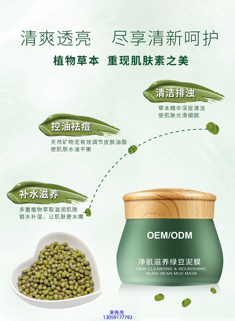 芙芙_泥膜深层清洁补水保湿绿豆泥膜 泥膜oem/OEM加工贴牌